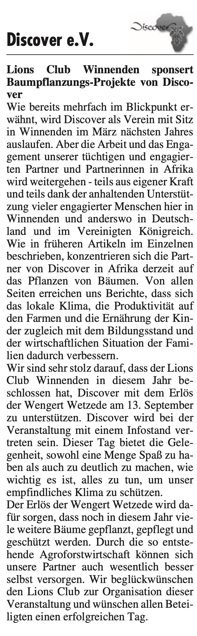 – Blickpunkt Winnenden – 25-08-21 Lions Club sponsert Discover-Projekte