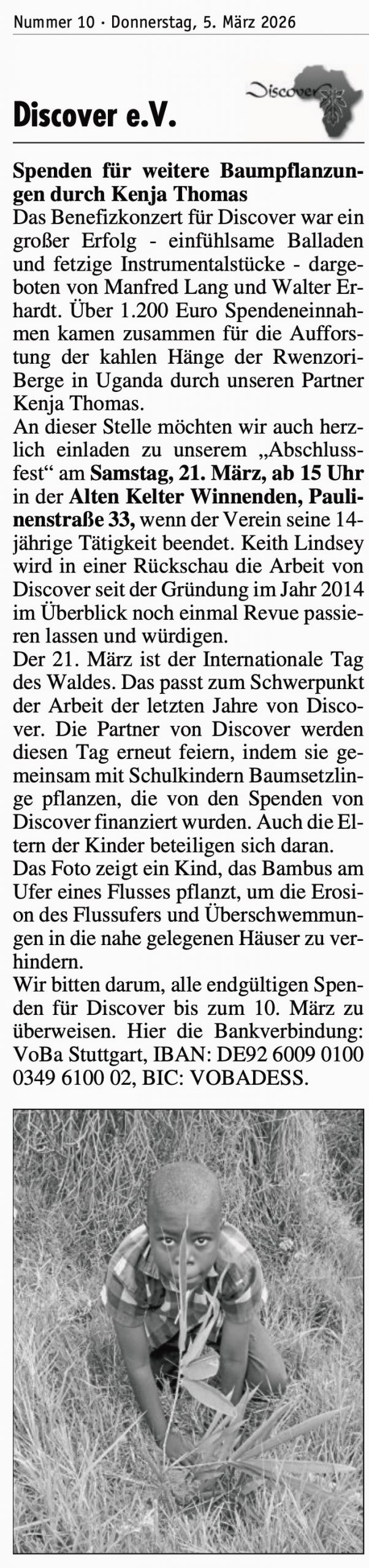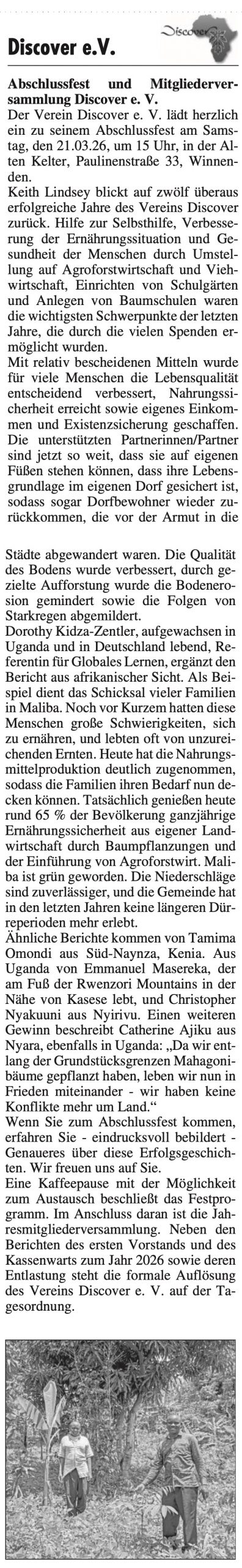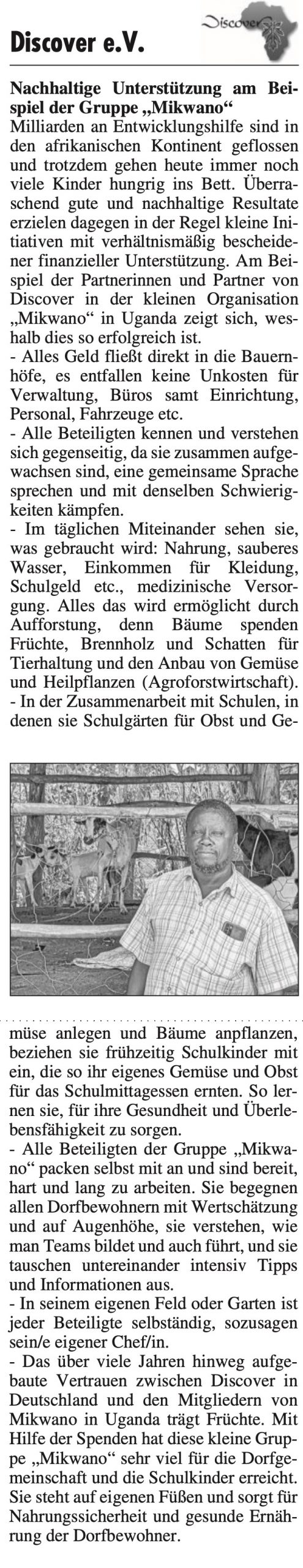 – Winnender Zeitung – 2016-02-09 Discover Bericht über Erfolgsprojekte in Uganda